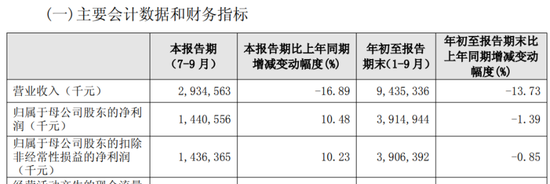 今年前三季度,贵阳银行实现营业收入94.35亿元,同比下降13.73%,实现归母净利润39.15亿元,同比下降1.39%,依然处于营收、净利双跌的状态。
