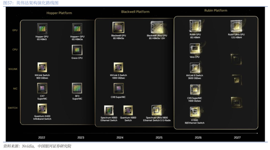 由于Rubin系列GPU将于2026年推出,参照Blackwell及Blackwell Ultra推出及量产节奏(Blackwell于2024年3月GTC大会发布,同年11月量产;Blackwell Ultra于2025年3月官宣,同年三季度开始量产),以及英伟达预测其将于明年初的GTC大会后启动样品测试,然后在2026年一季度小批量交付,2026年全年份额有望达到20%-30%,我们假设Rubin系列GPU于2026年3月GTC大会上发布,并于2026年三季度末开始大批量交付,假设上述1400万颗GPU中,大部分将以Blackwell系列为主,同时参考Hooper架构GPU累计出货量400万颗,远远低于Blackwell系列GPU出货量,我们预测2026年Rubin架构的GPU出货量有望达220万颗,2025年11月至2026年末Blackwell系列GPU出货量或将达1180万颗,典型2026年光模块市场出货量大幅提升基础。