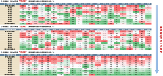 “春季躁动”的市场表现与当年全年的市场表现,呈现出比较显著的正相关性。只有在2015年、2024年这种宏观逻辑反转的年份,正相关性弱一些。